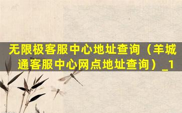 无限极客服中心地址查询(羊城通客服中心网点地址查询)