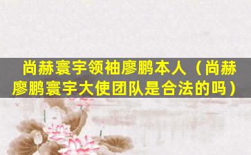 尚赫寰宇领袖廖鹏本人(尚赫廖鹏寰宇大使团队是合法的吗)