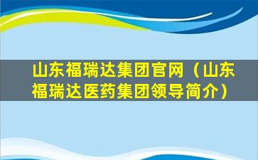 山东福瑞达集团官网(山东福瑞达医药集团领导简介)