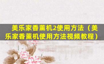 美乐家香薰机2使用方法(美乐家香薰机使用方法视频教程)