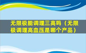 无限极能调理三高吗(无限极调理高血压是哪个产品)