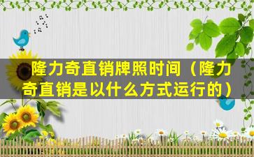 隆力奇直销牌照时间(隆力奇直销是以什么方式运行的)