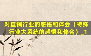 对直销行业的感悟和体会(特殊行业大系统的感悟和体会)