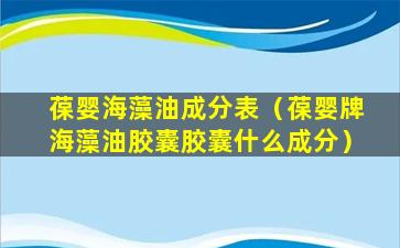 葆婴海藻油成分表(葆婴牌海藻油胶囊胶囊什么成分)