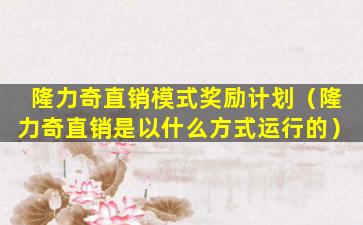 隆力奇直销模式奖励计划(隆力奇直销是以什么方式运行的)