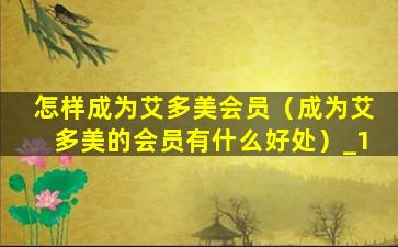 怎样成为艾多美会员(成为艾多美的会员有什么好处)