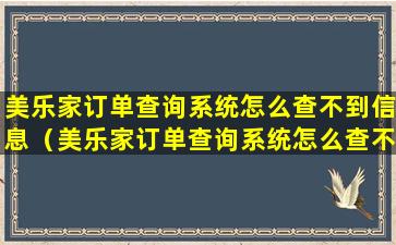 美乐家订单查询系统怎么查不到信息(美乐家订单查询系统怎么查不到信息了)
