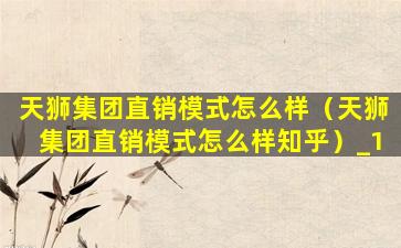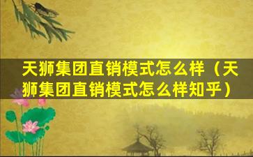 天狮集团直销模式怎么样(天狮集团直销模式怎么样知乎)