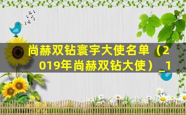 尚赫双钻寰宇大使名单(2019年尚赫双钻大使)