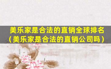 美乐家是合法的直销全球排名(美乐家是合法的直销公司吗)