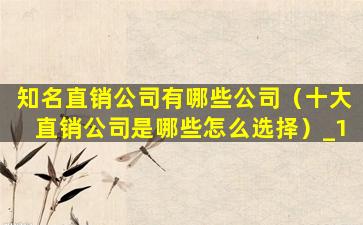 知名直销公司有哪些公司(十大直销公司是哪些怎么选择)