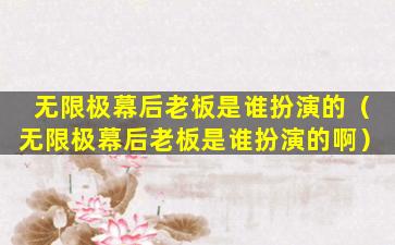 无限极幕后老板是谁扮演的(无限极幕后老板是谁扮演的啊)