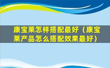 康宝莱怎样搭配最好(康宝莱产品怎么搭配效果最好)