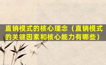 直销模式的核心理念(直销模式的关键因素和核心能力有哪些)