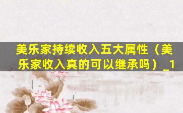 美乐家持续收入五大属性(美乐家收入真的可以继承吗)