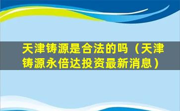 天津铸源是合法的吗(天津铸源永倍达投资最新消息)