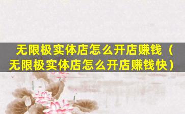 无限极实体店怎么开店赚钱(无限极实体店怎么开店赚钱快)
