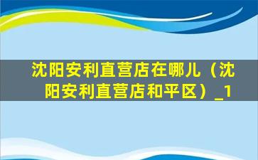 沈阳安利直营店在哪儿(沈阳安利直营店和平区)