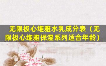 无限极心维雅水乳成分表(无限极心维雅保湿系列适合年龄)