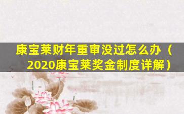 康宝莱财年重审没过怎么办(2020康宝莱奖金制度详解)