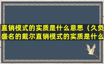 直销模式的实质是什么意思(久负盛名的戴尔直销模式的实质是什么)