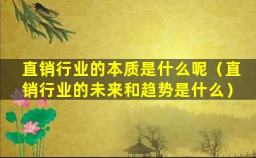 直销行业的本质是什么呢(直销行业的未来和趋势是什么)