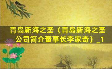 青岛新海之圣(青岛新海之圣公司简介董事长李家奇)