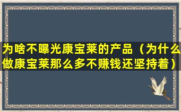 为啥不曝光康宝莱的产品(为什么做康宝莱那么多不赚钱还坚持着)