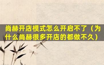 尚赫开店模式怎么开启不了(为什么尚赫很多开店的都做不久)