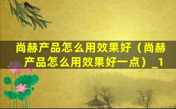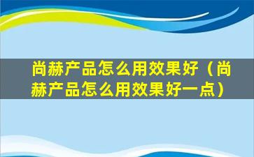 尚赫产品怎么用效果好(尚赫产品怎么用效果好一点)
