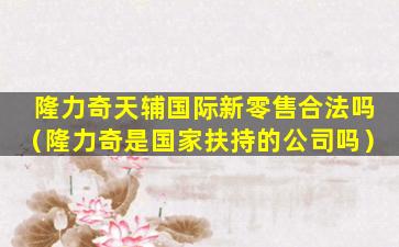 隆力奇天辅国际新零售合法吗(隆力奇是国家扶持的公司吗)
