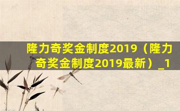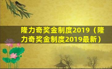 隆力奇奖金制度(2019年)