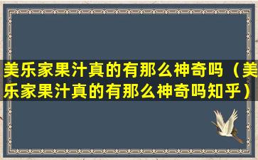 美乐家果汁真的有那么神奇吗(美乐家果汁真的有那么神奇吗知乎)