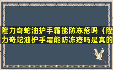 2、隆力奇蛇油护手霜能防冻疮吗是真的吗