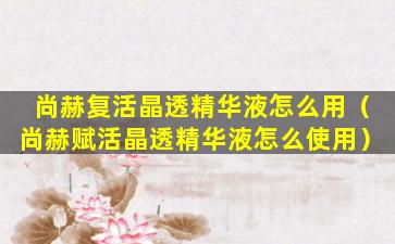 尚赫复活晶透精华液怎么用(尚赫赋活晶透精华液怎么使用)