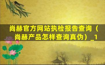尚赫官方网站执检报告查询(尚赫产品怎样查询真伪)