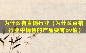 为什么有直销行业(为什么直销行业中销售的产品要有pv值)