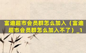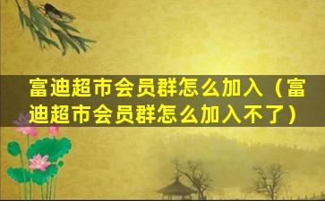 富迪超市会员群怎么加入(富迪超市会员群怎么加入不了)