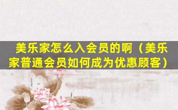 美乐家怎么入会员的啊(美乐家普通会员如何成为优惠顾客)