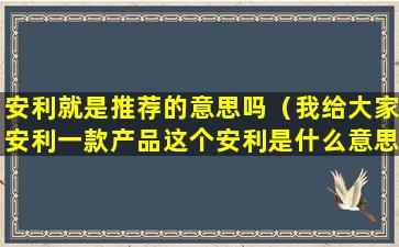 安利就是推荐的意思吗(我给大家安利一款产品这个安利是什么意思)