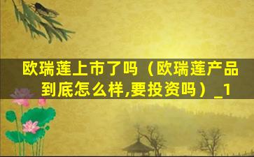 欧瑞莲上市了吗(欧瑞莲产品到底怎么样,要投资吗)