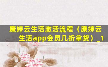 康婷云生活激活流程(康婷云生活app会员几折拿货)