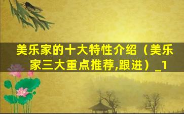 美乐家的十大特性介绍(美乐家三大重点推荐,跟进)