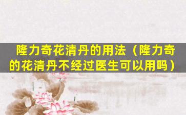 隆力奇花清丹的用法(隆力奇的花清丹不经过医生可以用吗)