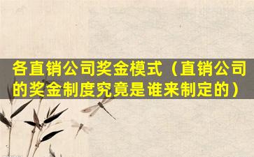 各直销公司奖金模式(直销公司的奖金制度究竟是谁来制定的)