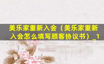 美乐家重新入会(美乐家重新入会怎么填写顾客协议书)