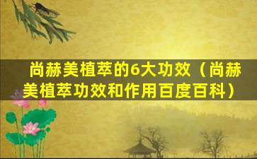 尚赫美植萃的6大功效(尚赫美植萃功效和作用百度百科)