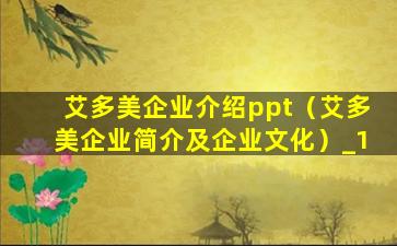 艾多美企业介绍ppt(艾多美企业简介及企业文化)