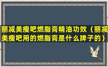 丽减美瘦吧燃脂膏精油功效(丽减美瘦吧用的燃脂膏是什么牌子的)